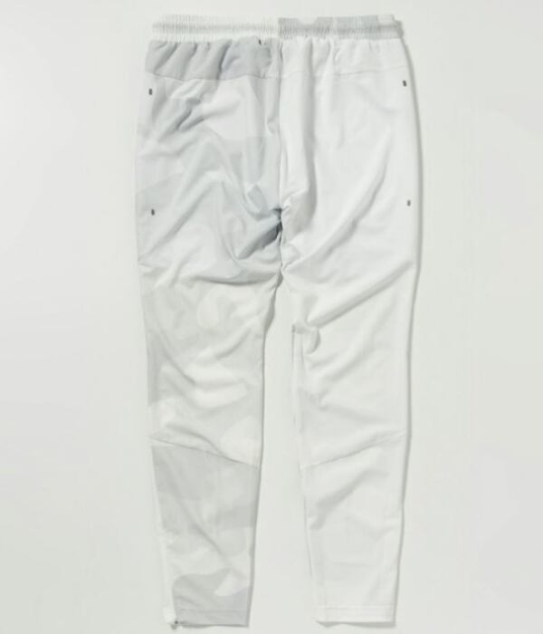 軽量かつ高いストレッチ性でウォーキングやトレーニングなどアクティブなシーンに活躍するセットアップ。ホワイトはカモフラ柄、ブラックはペイズリー柄のクレイジー2色を用意しています。アクティブに適した伸縮性の高い、吸水速乾混率素材を使用した3D立体パターンでスタイリッシュなランニングを楽しめます。