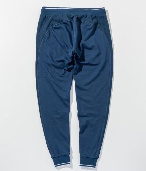 裾口とウエストにラインデザインを施したスウェットパンツ。