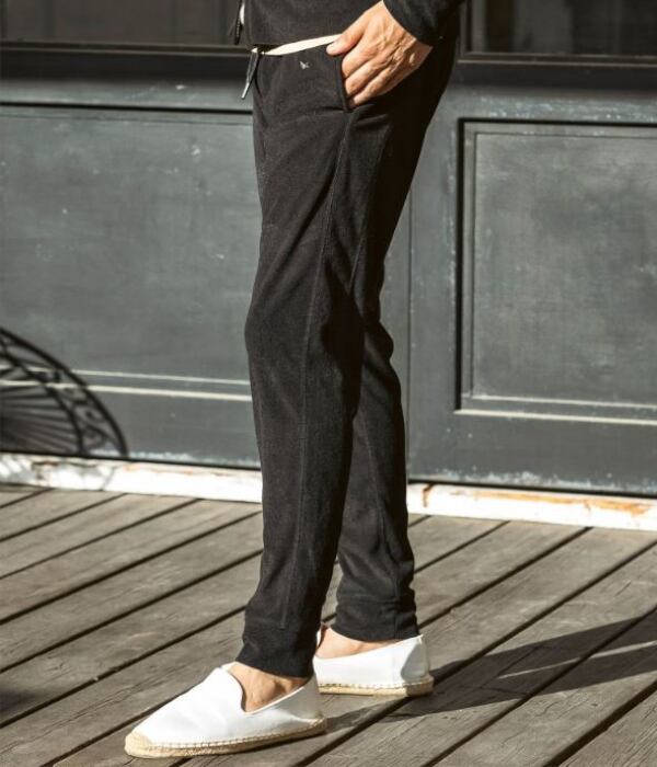 柔らかな肌当たりのパイル生地は、360度全方向に伸縮する優れたストレッチ性を備えストレスフリーな着心地を実現。