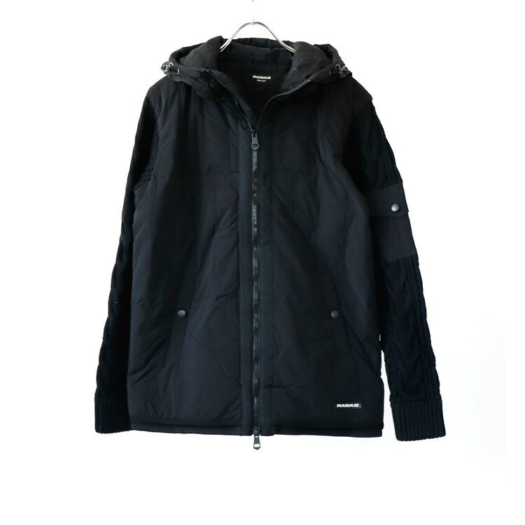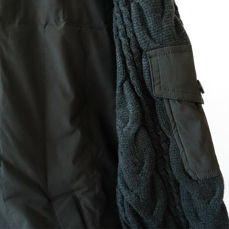 身頃はダウン、袖はニット仕様のドッキングパーカーです。