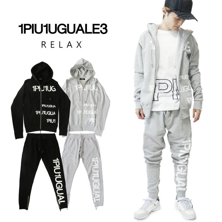 当店限定別注モデル 1PIU1UGUALE3 RELAX ウノ ピュ ウノ ウグァーレ トレ リラックス ロゴ スエットパーカー&パンツ 上下 セットアップ