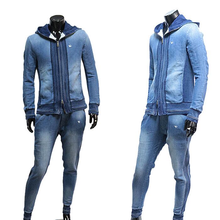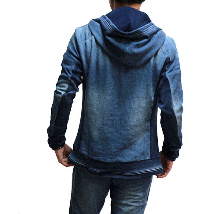 1PIU1UGUALE3 RELAX ウノピゥウノウグァーレトレ ジョグデニムシャーリングパーカー メンズ インディゴ S M L XL XXL ダブルジップ