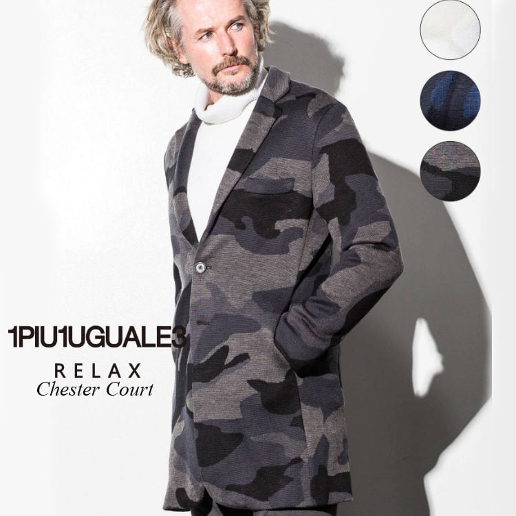 1PIU1UGUALE3 RELAX(ウノピゥウノウグァーレトレ リラックス) ウール混カモニットチェスターコート ロングコート ウノピュウノ usk-812