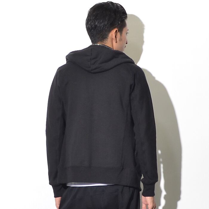 1PIU1UGUALE3 RELAX【ウノピゥウノウグァーレトレ】へヴィスウェットラインストーン付フードパーカ スウェットパーカー スエット uso-628(ブラック ホワイト)