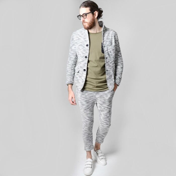 セットアップなので着合わせが楽で、休日の装いには最適です。