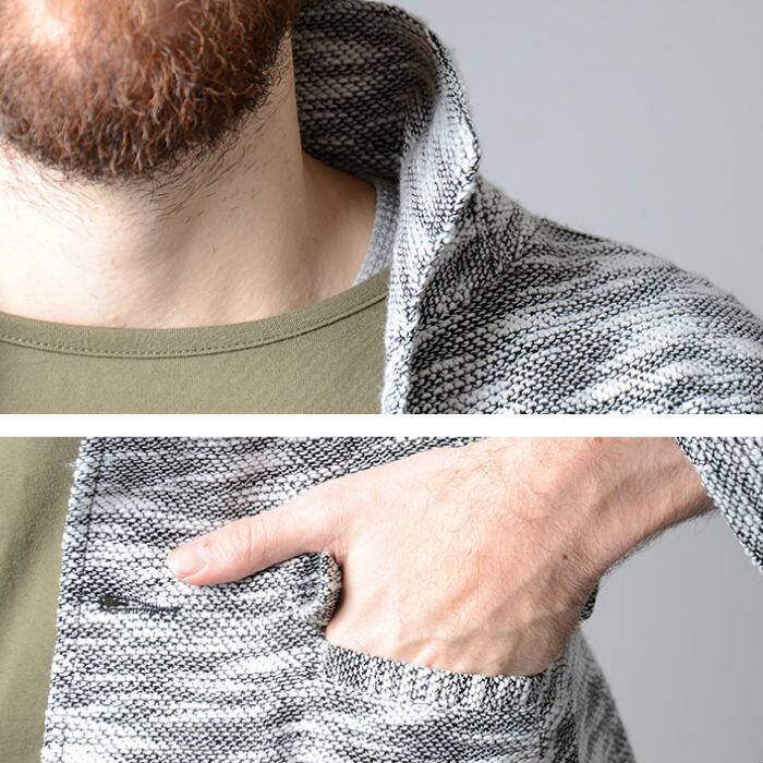 襟に特徴のあるイタリアンカラーは、羽織るだけで男らしい雰囲気と格好良い印象を与えます。