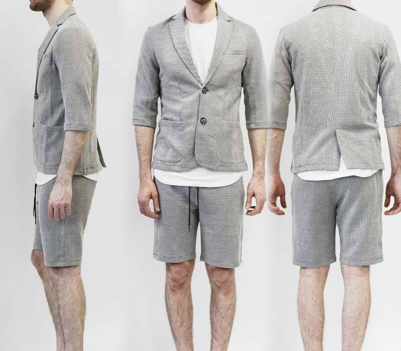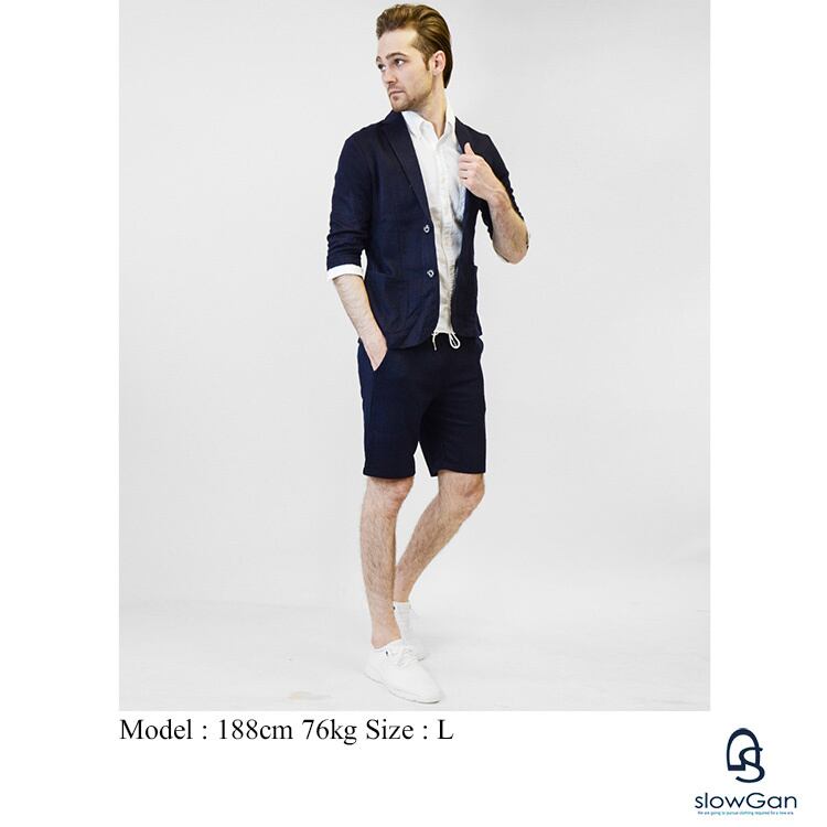 ジャケット&ショーツのセットアップなので、バカンスやリゾートスタイルにも簡単に取り入れる事が可能です。