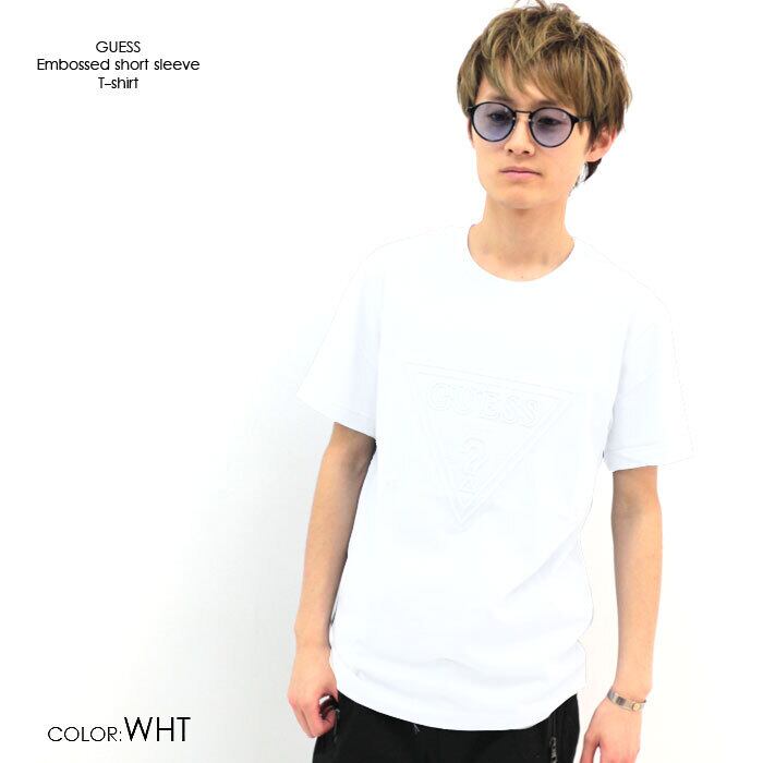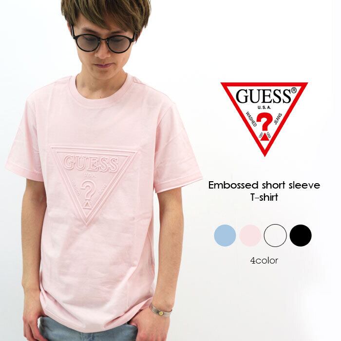 人気ブランドGUESSの長袖Tシャツ GUESS(ゲス)より定番三角ロゴをアレンジしたデザインのメンズ プリントTシャツ GUESSの三角ロゴをエンボス加工でアレンジした新鮮なデザインでカラーはブラック、ホワイト、ピンク、ブルーの複数展開になっています。