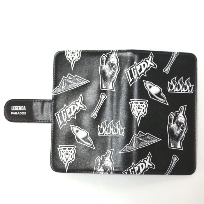 ディテール:考古学からインスパイアされたグラフィックを全体に落とし込んだデザインが特徴的な手帳型カバー。携帯を貼り付けて簡単に装着出来るタイプで、上下でスライドが出来る仕様になっているためカメラ撮影も可能なデザイン。内側はカードケース付きになっているなど機能面も充実。機種問わず、H143mm×W80mmm以内の大きさの多機種のスマートフォンが対応可能になっているのも魅力的です。