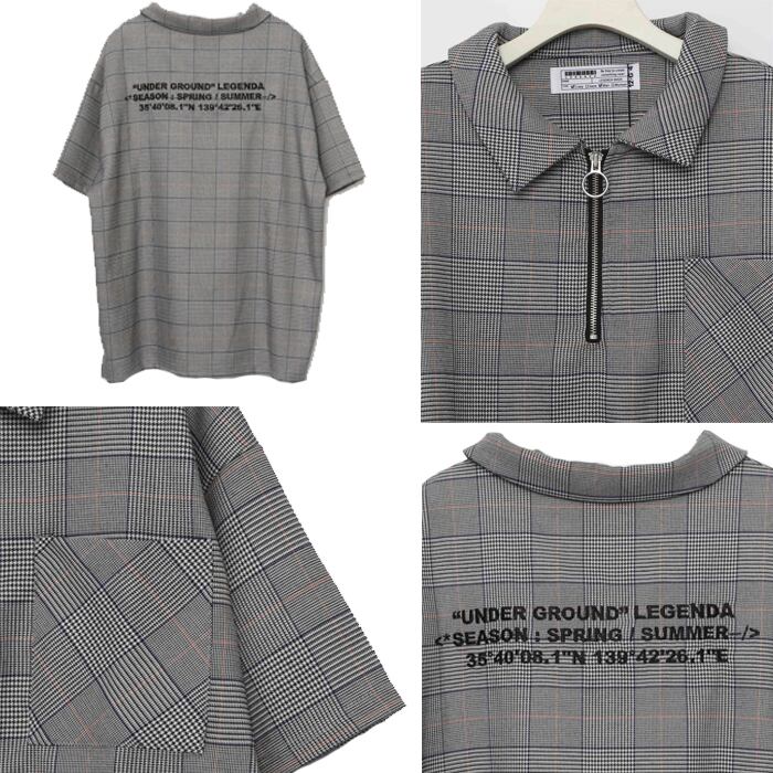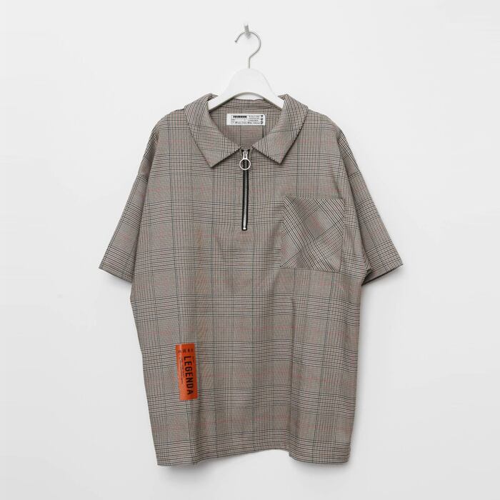 【50%OFF】LEGENDA【レジェンダ】Glencheck Halfzip シャツ【les148】半袖 メンズ レディース ユニセックス カジュアル ストーリート グレー ブラウン