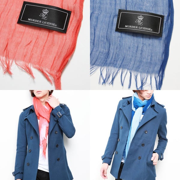MURDER LICENSE(マーダーライセンス)より柔らかい肌触りのレーヨンに上品な雰囲気のシルクが入った生地を使用したストール。それぞれの素材が持つ独特の光沢感が淡い色味に絶妙にプラスされより上品さがプラスされています。季節感のある色合いでコーディネートのカラーアクセントとして、プラスワンアイテムで取り入れたい一枚。発色もよく、顔色を良く見せてくれるのもポイント。