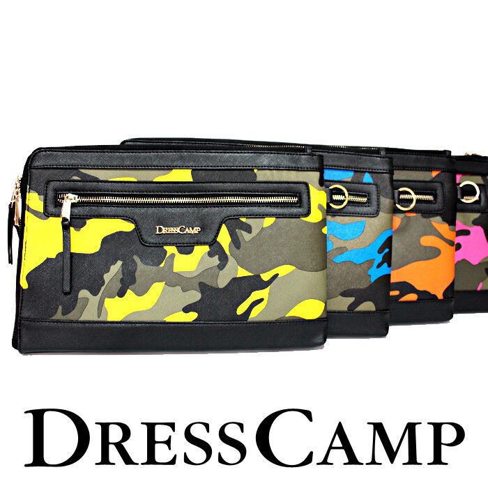 ドレスキャンプより鮮やかなネオンカラーとカモフラージュ柄のコンビネーションがユニセックスなデザインのクラッチバッグ。 カモフラージュ柄の出方にはひとつひとつ個体差があり、すべてが一点ものの仕上がりとなっています。 出し入れに便利な大きく開くファスナー式で、書類の収納にもぴったりサイズなので実用性も◎ 艶やかなロゴプレートが高級感漂う仕上がりです。