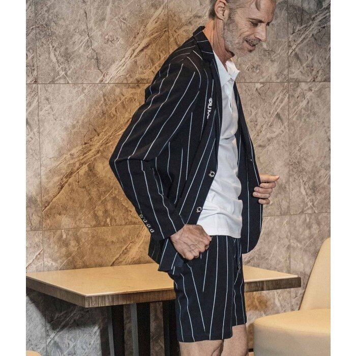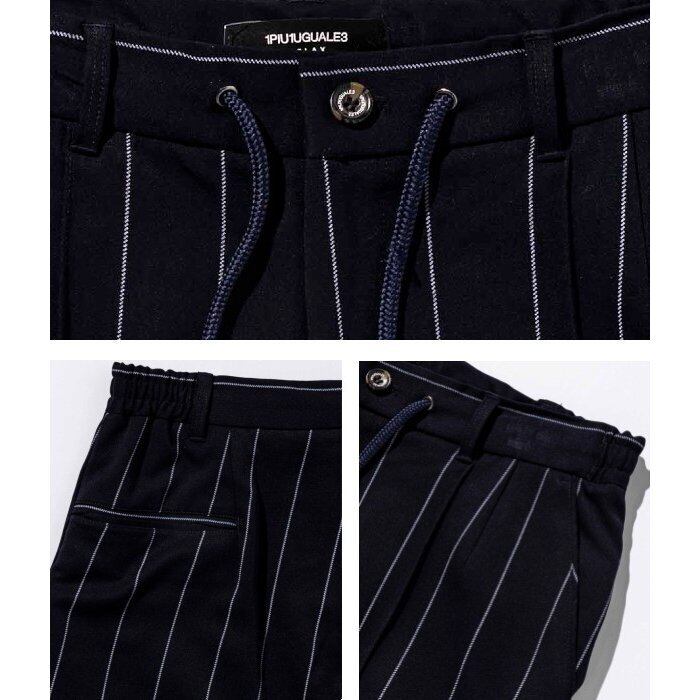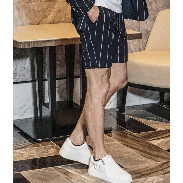 ウエスト部分はサイドゴム+ドローコードによりリラクシングな仕上がりに。軽快なショーツにシャープなストライプをチョイスすることで全体のシルエットを引き締め。