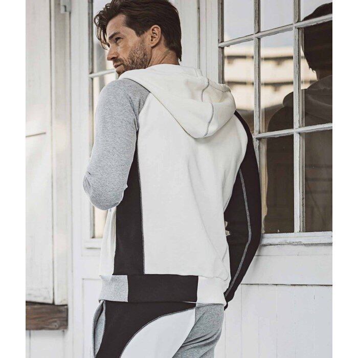 マルチカラーで仕立てたクレイジーパターンが目を惹くセットアップ。一見奇抜に見えるクレイジーパターンも、シックなモノトーンでまとめることにより他のアイテムとも馴染みよく仕上がりました。