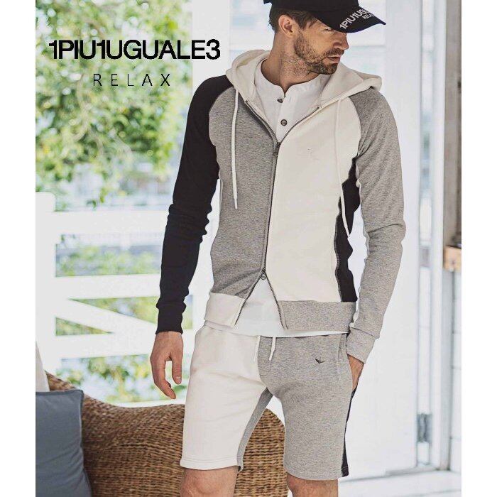 1PIU1UGUALE3 RELAX ウノピゥウノウグァーレトレ クレイジーパーカー&ハーフパンツセット セットアップ 上下セット カジュアル ブランド おしゃれ