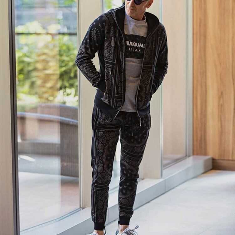 1PIU1UGUALE3 RELAX ウノ ピュ ウノ ウグァーレ トレ リラックス ペイズリー柄裏毛ロングパンツ メンズ カジュアル ジャージパンツ スウェットパンツ