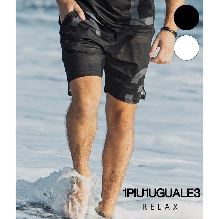 1PIU1UGUALE3 RELAX ウノピゥウノウグァーレトレ ランダムロゴラッシュガードハーフパンツ メンズ ボトムス ショーツ 短パン レジャー サーフ マリンスポーツ