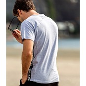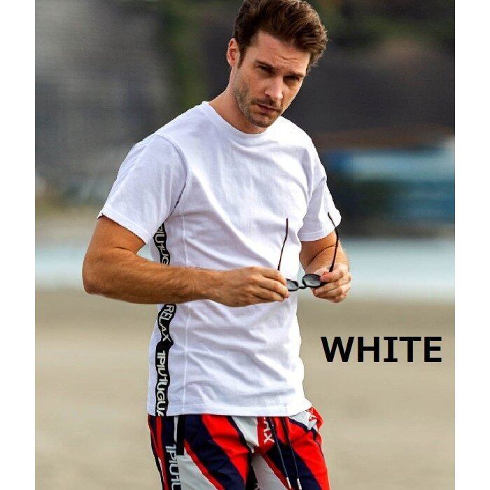サイドにラインテープを配したクルーネックTシャツ。 シンプルなモノトーンで仕上げたデザインは使い勝手がよくデイリーユースにピッタリ。