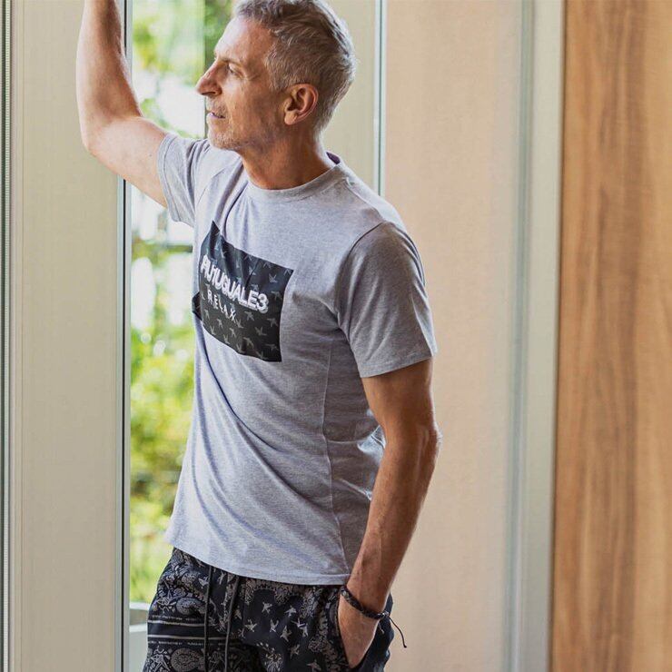 シンプルながら垣間見える遊び心が大人のカジュアルスタイルを彩る1枚です。