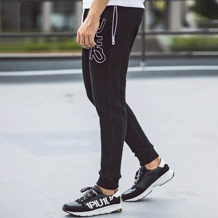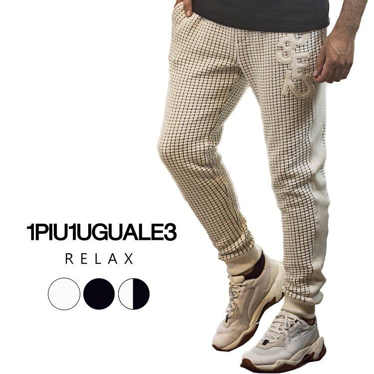 1PIU1UGUALE3 RELAX ウノピゥウノウグァーレトレ ランダムロゴワッフルリブパンツ メンズ ロングパンツ カジュアル