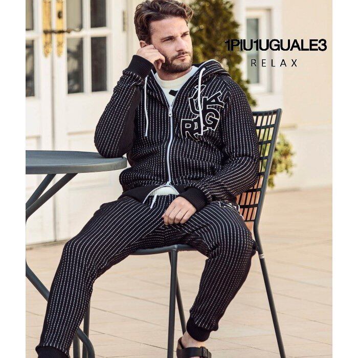 1PIU1UGUALE3 RELAX ウノピゥウノウグァーレトレ ランダムロゴワッフルリブパーカー&パンツセット 上下セット セットアップ 秋冬