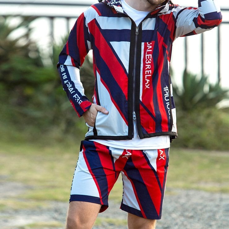 幾何学に重ねたラインを主体にロゴを散りばめ、タウンユースから海辺にも映えるデザインに仕上がりました。