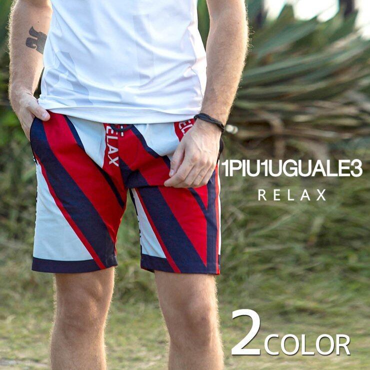1PIU1UGUALE3 RELAX ウノ ピュ ウノ ウグァーレ トレ リラックス メンズ 総柄ロゴハーフパンツ ショートパンツ メンズ 春夏 夏服 春服