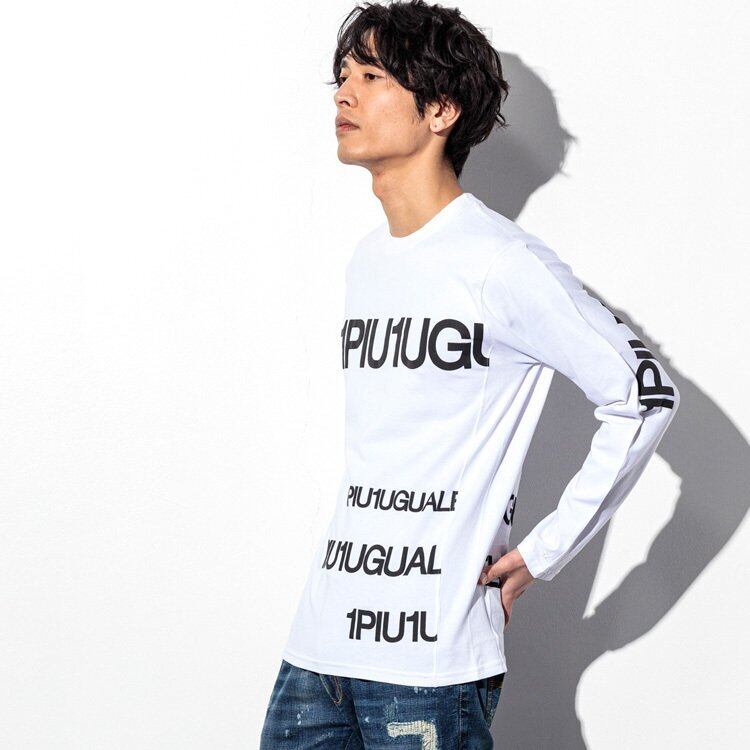 当店限定 1PIU1UGUALE3 RELAX ウノピゥウノウグァーレトレリラックス 長袖 Tシャツ 総ロゴ ロンT