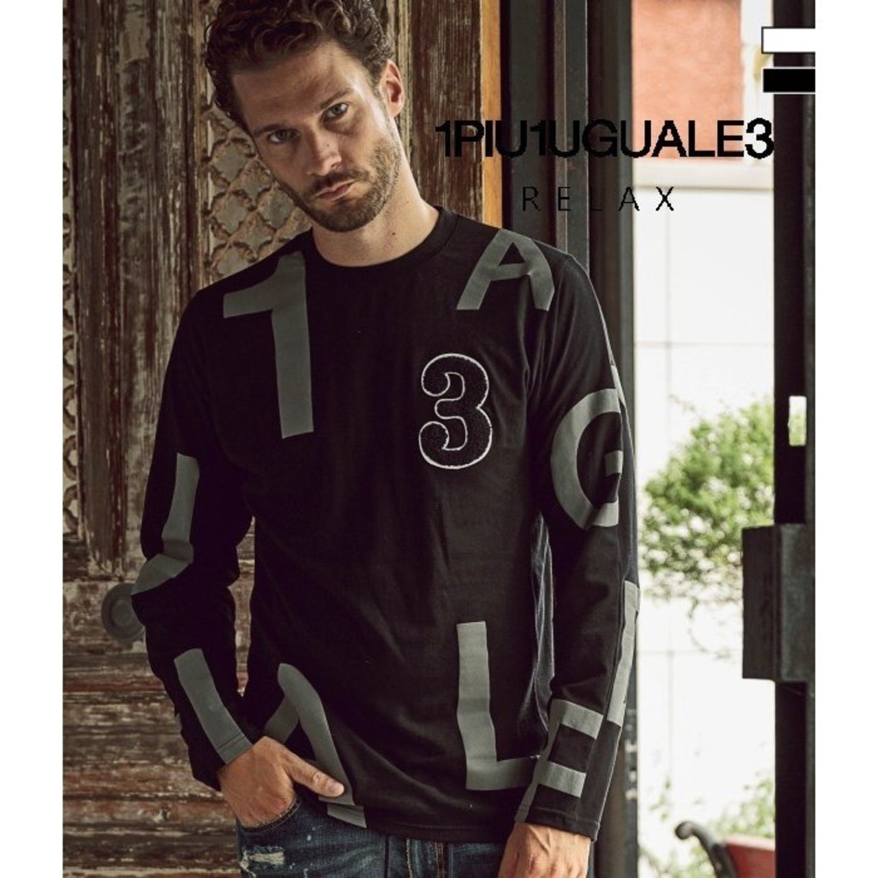 1PIU1UGUALE3 RELAX ウノピゥウノウグァーレトレ ランダムロゴ長袖Tシャツ メンズ カジュアル スポーツ ロゴ おしゃれ