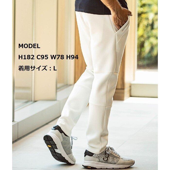 スポーティな印象を加える膝の切り替えが曲げ伸ばしのストレスを軽減。総ゴム+ドローコードのウエストもリラクシングな穿き心地を齎します。