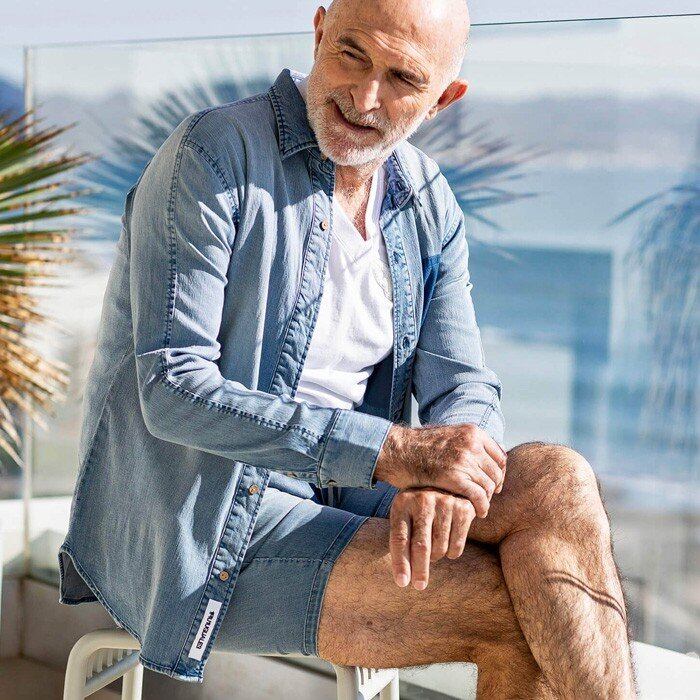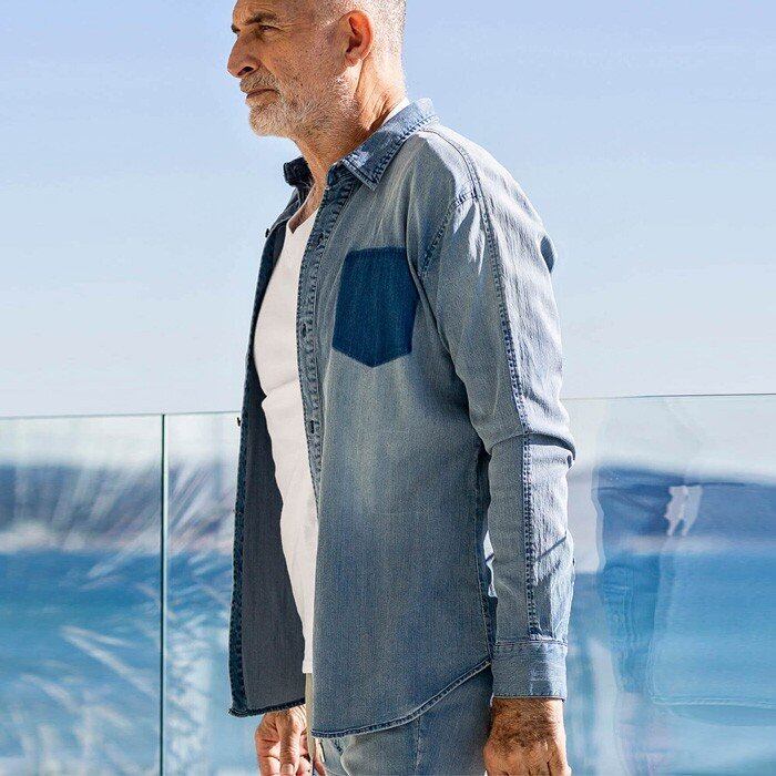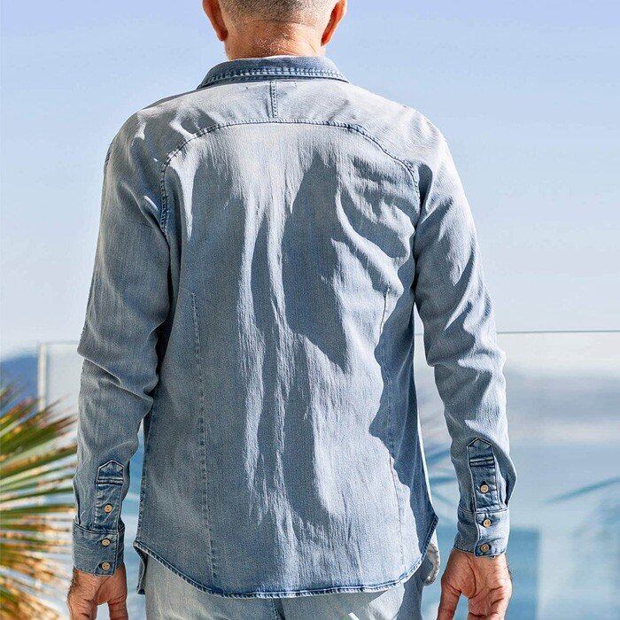 ウノ ピュ ウノ ウグァーレ トレ リラックス 1PIU1UGUALE3 RELAX シャンブレーシャツ インディゴ デニムシャツ メンズ カジュアル