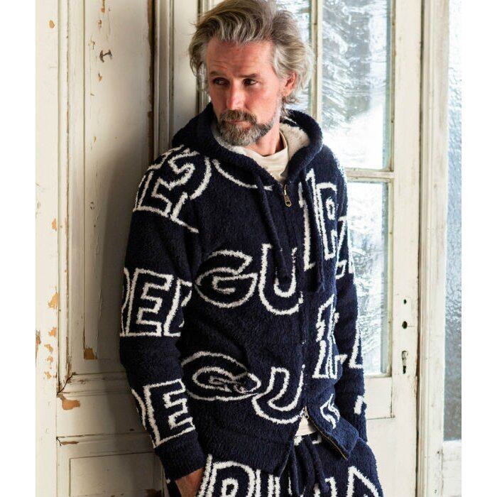 1PIU1UGUALE3 RELAX ウノ ピュ ウノ ウグァーレ トレ リラックス メンズ 総柄ロゴニットパーカー メンズ フーディー パーカ ラグジュアリー ルームウェア 部屋着