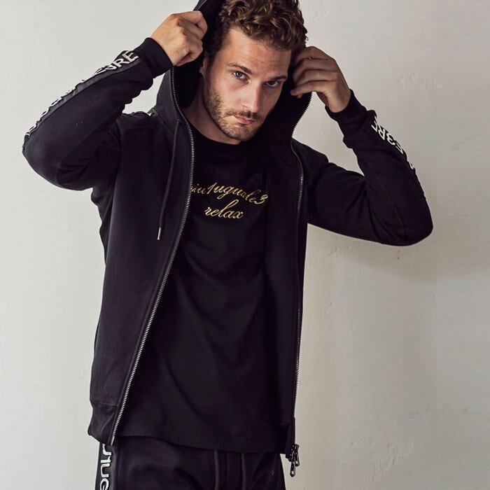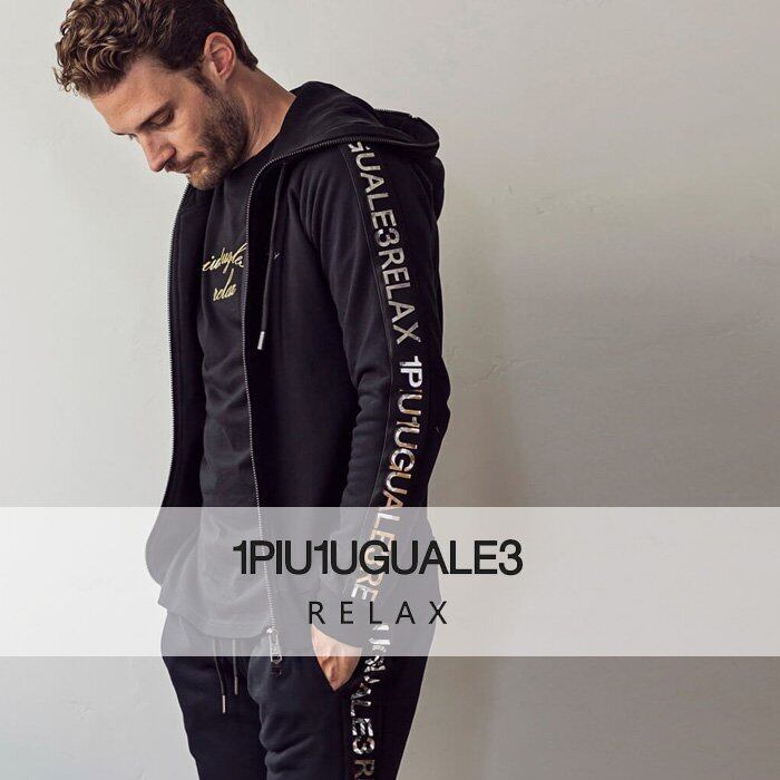1PIU1UGUALE3 RELAX(ウノピゥウノウグァーレトレ)よりサイドのエンボスロゴが目を惹くジップパーカーが登場。