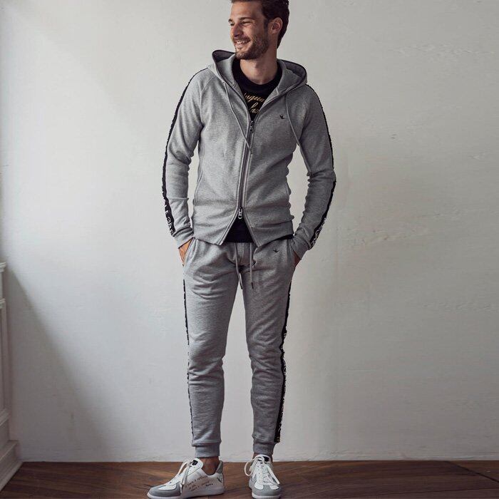 1PIU1UGUALE3 RELAX(ウノピゥウノウグァーレトレ)よりサイドのエンボスロゴが目を惹くジップパーカーとロングパンツのセットが登場。