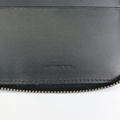 植物タンニンで鞣し、ブラックに染め上げたヌメ革を使用したラウンドファスナー二つ折財布。