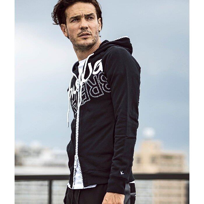 フロントからフードまでぐるっと囲む大きなファスナーがスポーティな面持ちに大人の遊び心を添えます。