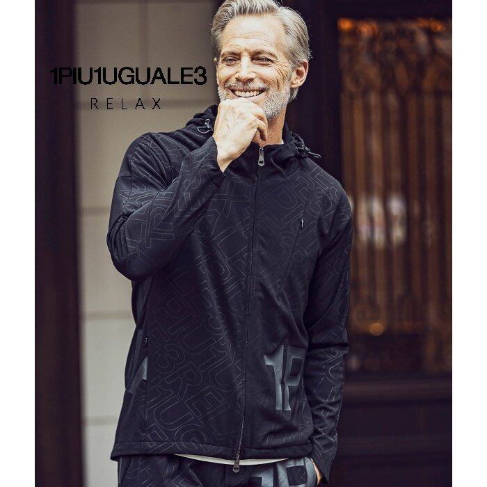 1PIU1UGUALE3 RELAX ウノピゥウノウグァーレトレ 4WAY総柄ロゴパーカー メンズ カジュアル スポーツ アウター ストレッチ おしゃれ