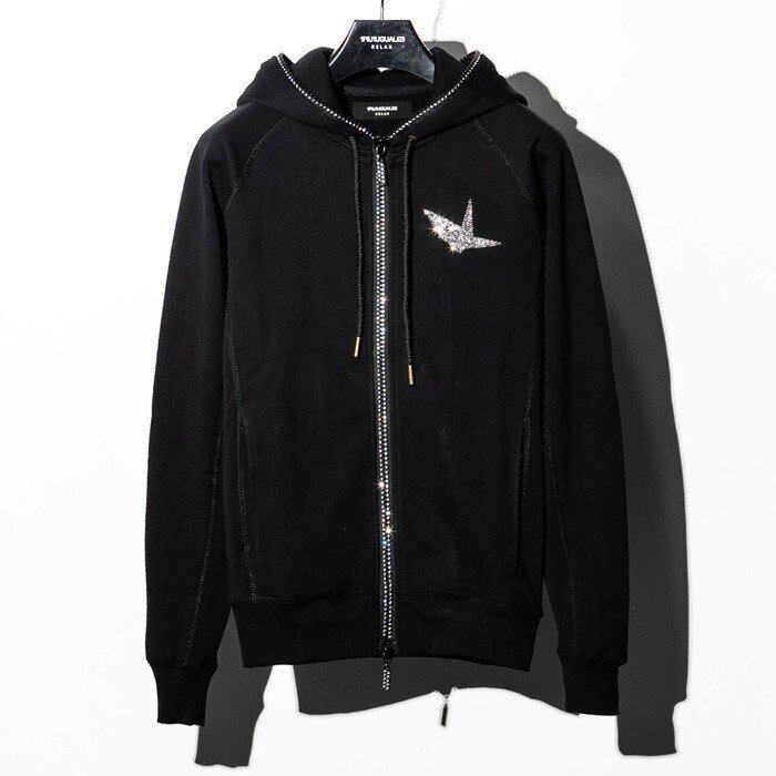 同ブランドのアイコン「鶴」に加えて、フード周りまでラインストーンが配されたラグジュアリーな逸品です。