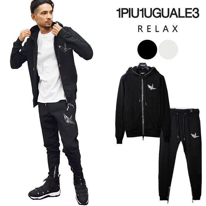 1PIU1UGUALE3 RELAX ウノ ピュ ウノ ウグァーレ トレ リラックス セットアップ ラインストーンジップパーカー&スウェットパンツ ジャージ 上下セット
