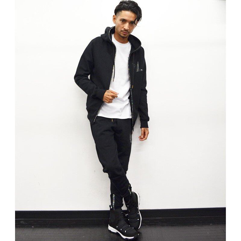 ラインストーンジップパーカーとロングパンツのセットアップです。