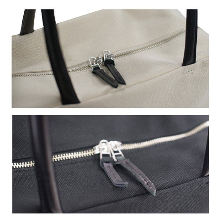 8号キャンバスを使用したシンプルなボストントートバッグ。 A4ファイルが縦に入る大きさ。外側にもポケットをつけています。(20×14cmが2つ) 手提げにもショルダーにもなる持ち手(本革)をつけています。 持ち手と同色の本革ネームをポケット部分に挟み込んでいます。 底部分は、出し入れ可能な底板を入れていますので、荷物の量や 使うシーンで使い分けてご使用ください。 ユニセックスでご使用いただけるアイテムで、オフィスカジュアルとしても 提案できると思います。