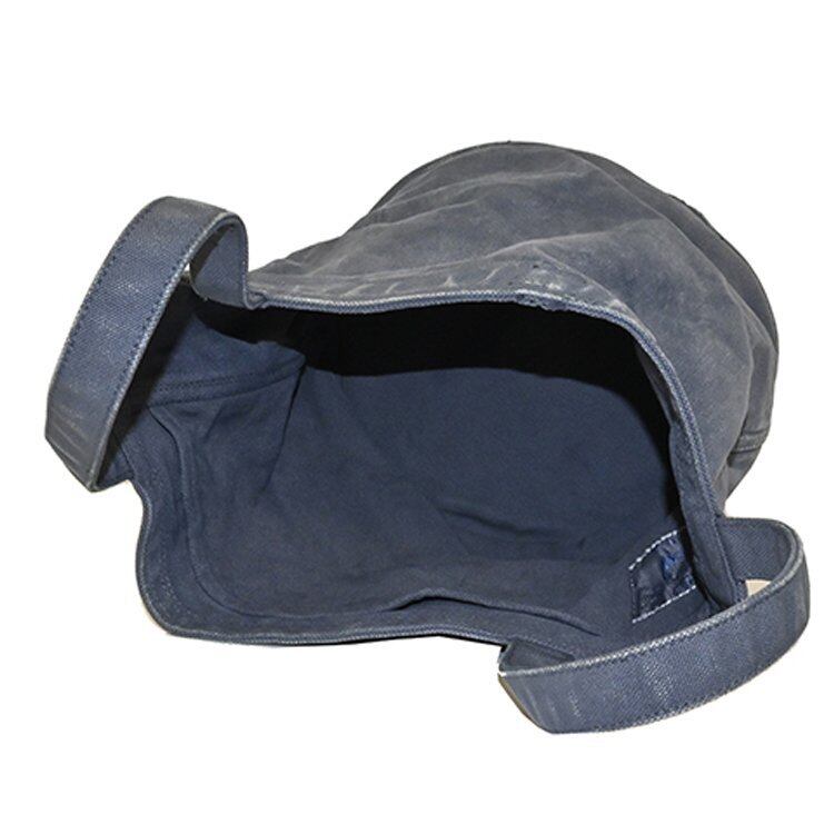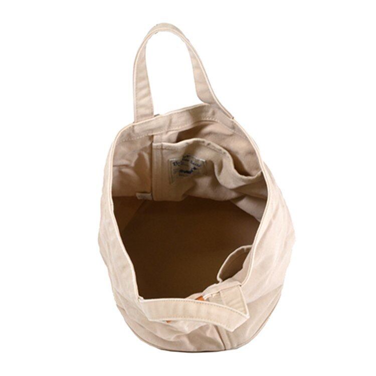 6号キャンバスの反応染トート。 底が丸い形をしているので、思った以上に荷物が入ります。