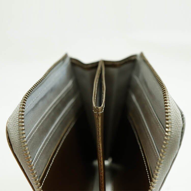 L字型ファスナーならではのシンプルな開閉により、紙幣・硬貨・カードの取り出しが容易に行え、コンパクトなサイズ感で、気軽に持ち運びができます。 ゴールドとシルバーのダブルフェイス仕様で、ジュエリーでは定番の「ゴールド」と「シルバー」。