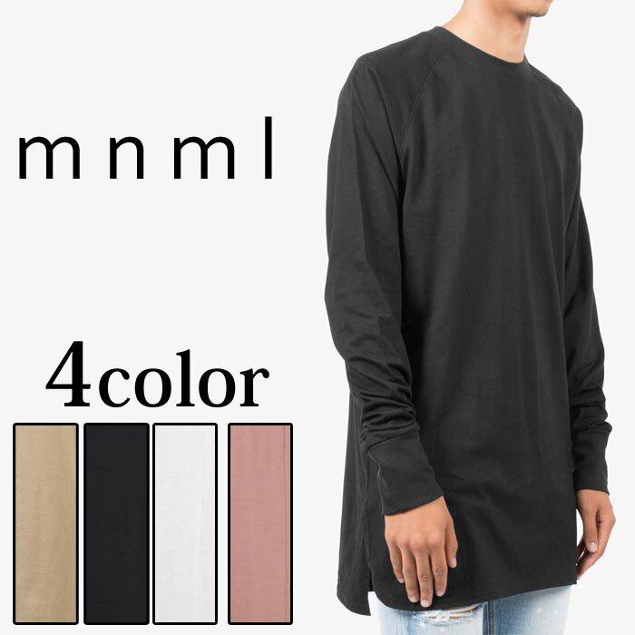 mnmlの長袖Tシャツ。ラグランの構造しており、スプリットバック裾でデザインされています。