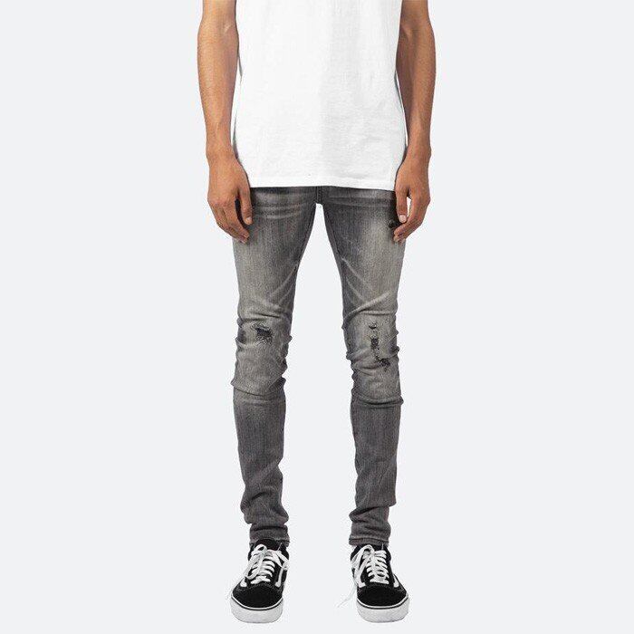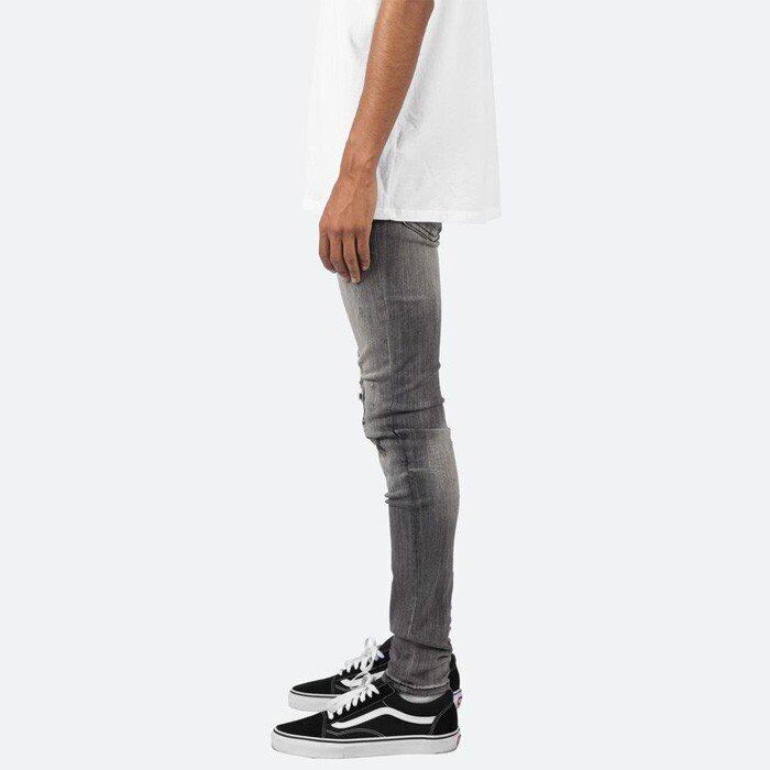 X145ストレッチデニムは、スタッキング用に拡張された股下で全体的にスキニーであるXフィットを使用して設計されており、ヴィンテージグレーウォッシュとカスタムの苦痛を特徴としています。