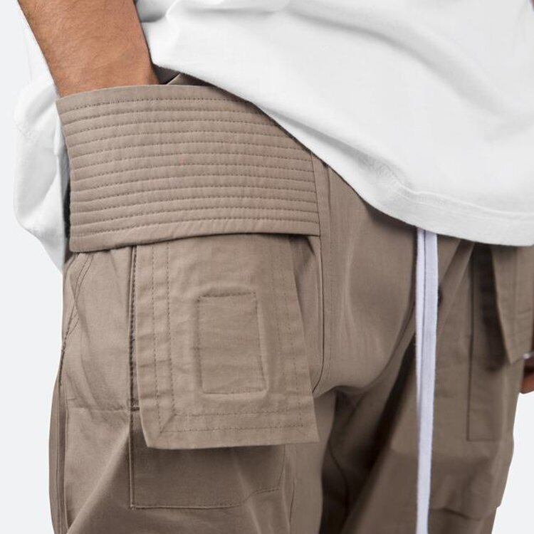 ドロップクロッチカーゴパンツは、全体にリラックスしたフィット感でデザインされており、わずかなドロップクロッチ、伸縮性のあるセルフウエストバンド、カーゴポケット、 各脚の上部を包むキルティングストラップが特徴です。