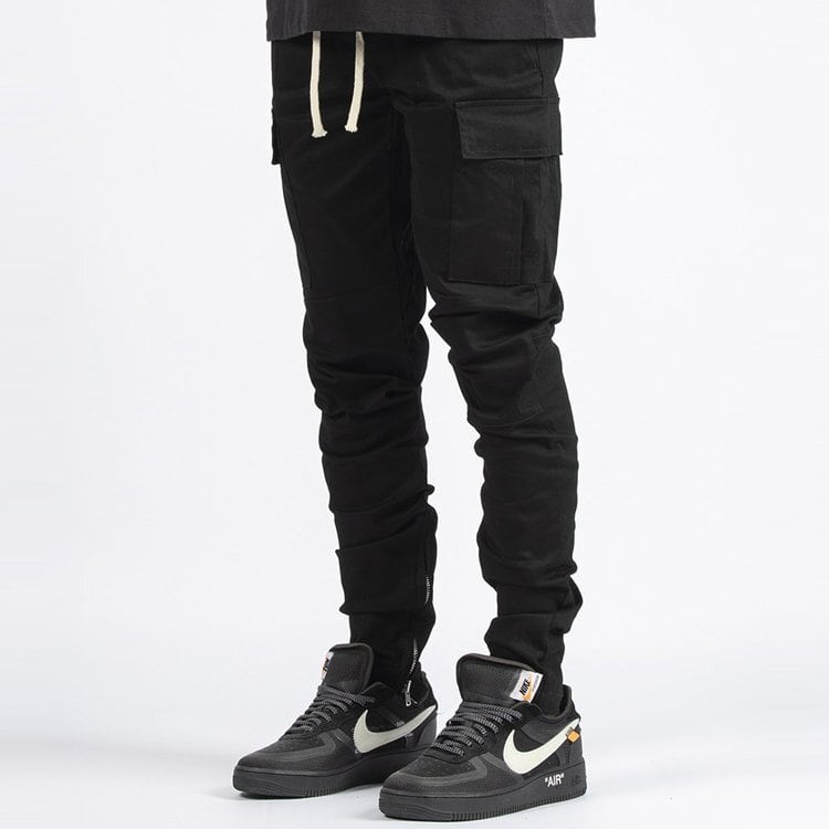 こちらのV1カーゴパンツは全体にスキニーフィットとなっており、伸縮性のあるウエストバンドにはドローコード、サイドシームにカーゴフラップポケット、足首の袖口にジッパー式クロージャーが付いています。