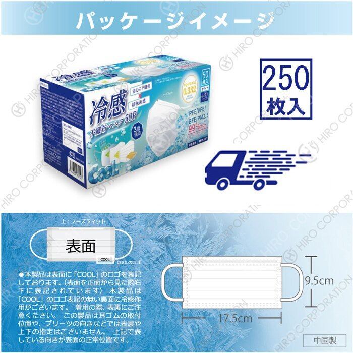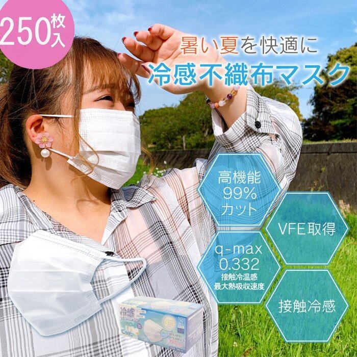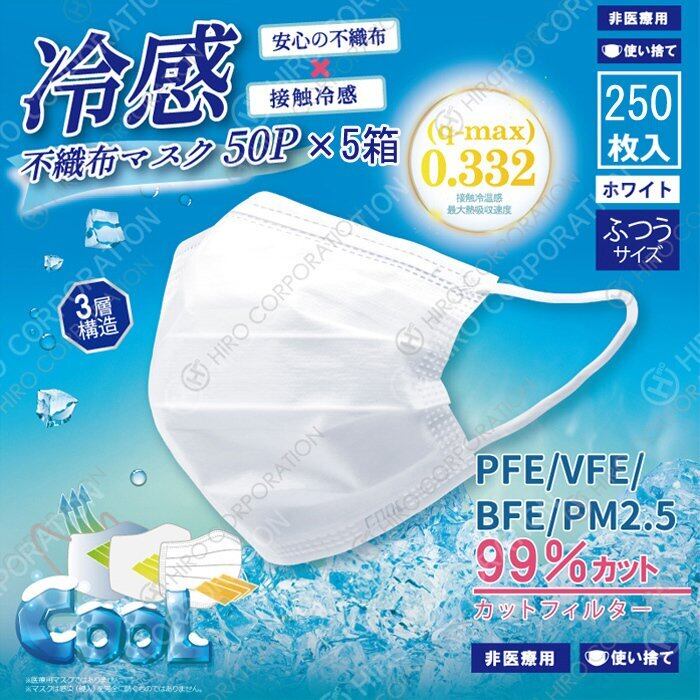 冷感 不織布 マスク 250枚 5箱 冷たい ひんやり 夏用 冷感マスク 大人用 成人 普通サイズ まとめ買い お得 50枚 5箱 250枚 冷感マスク