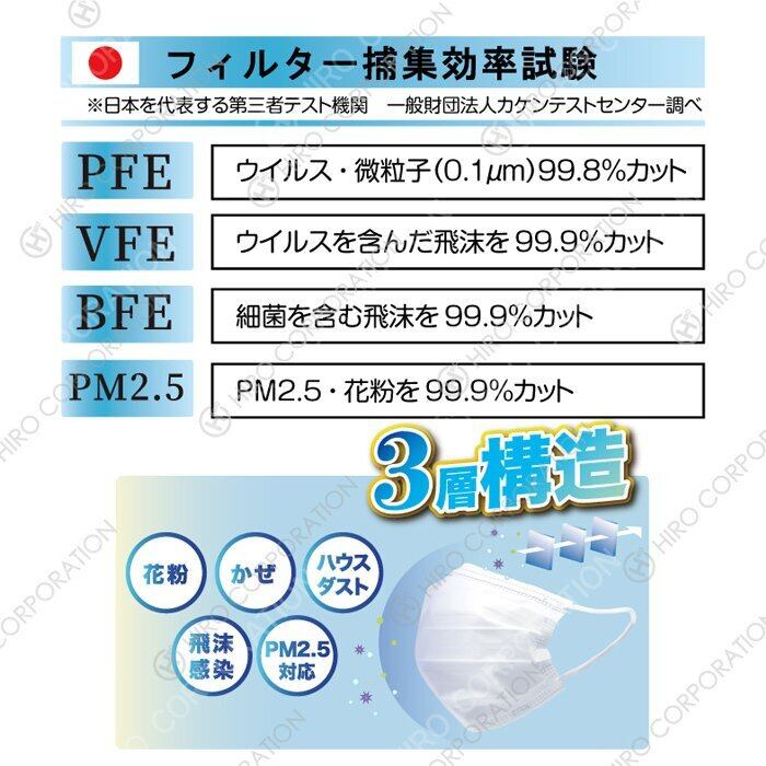 ●PFE:微粒子ろ過効率99%