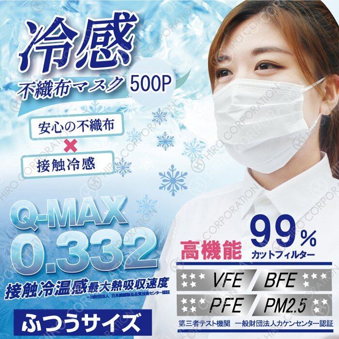 500枚 10箱セット 冷感マスク 使い捨て 不織布冷感マスク クール 夏用 冷たい ひんやり 涼しい まとめ買い 大容量 花粉 ウイルス対策 予防 飛沫